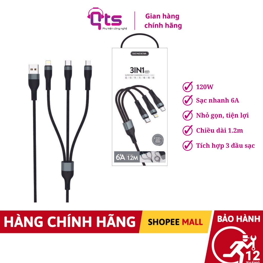 | 592 | 592 | Xtra Cáp Sạc Nhanh 3in1 Sendem M37, Chính Hãng QTS, Sạc Siêu Nhan... | https://shopee.vn/riomcn-i.727222242.22658646332 | 0 | 0.1675 | 150000 | 0% | 0 | 0 | 🔗 | |