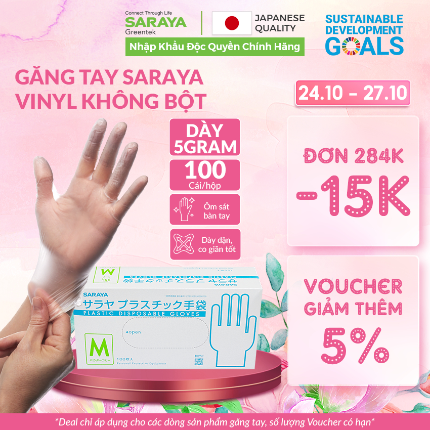 | 604 | 604 | Xtra Găng tay Saraya Vinyl Không Bột trong suốt loại dày 5gram, d... | https://shopee.vn/riomcn-i.362651932.29507967430 | 0 | 0.18 | 89000 | 31% | 275 | 24475000 | 🔗 | |