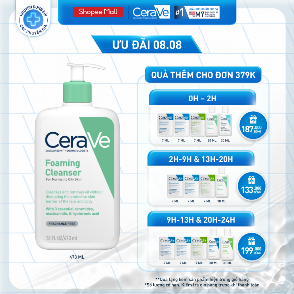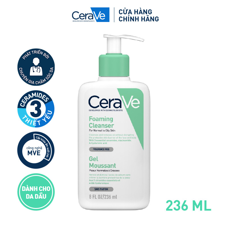 Cerave official PHÁP Sữa rửa mặt CERAVE cho da dầu da mụn và da khô nhạy cảm ml 105,000