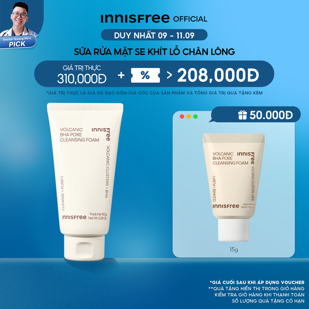 Sữa rửa mặt se khít lỗ chân lông innisfree Volcanic Pore BHA Cleansing Foam 150g 247,000