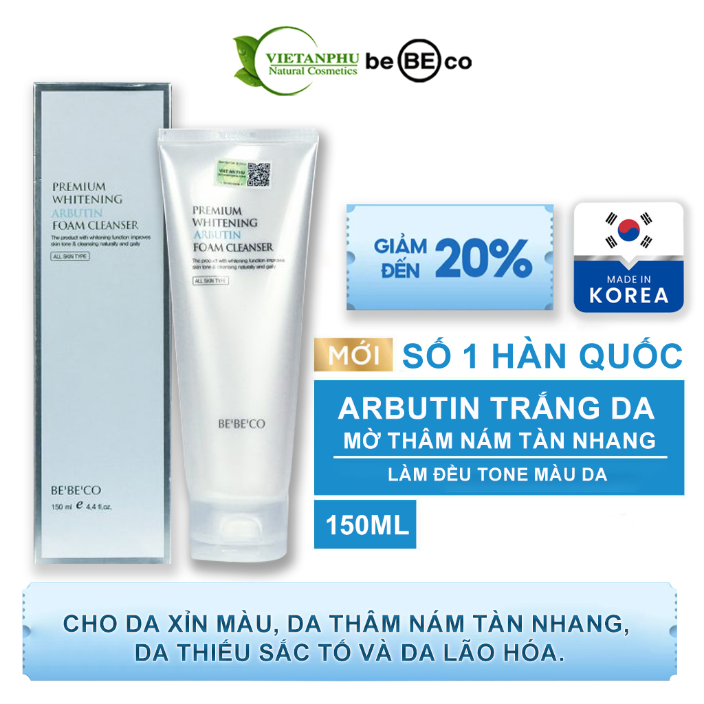 Sữa rửa mặt trắng da -sáng da mờ nám tự nhiên chống lão hóa da Cao cấp BEBECO Whitening Arbutin 150ml cho mọi loại da 295,200