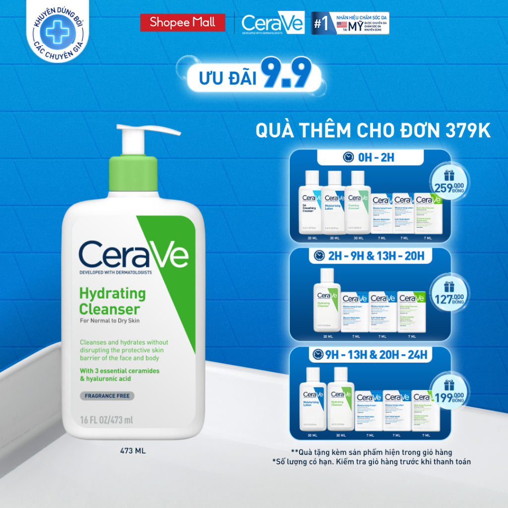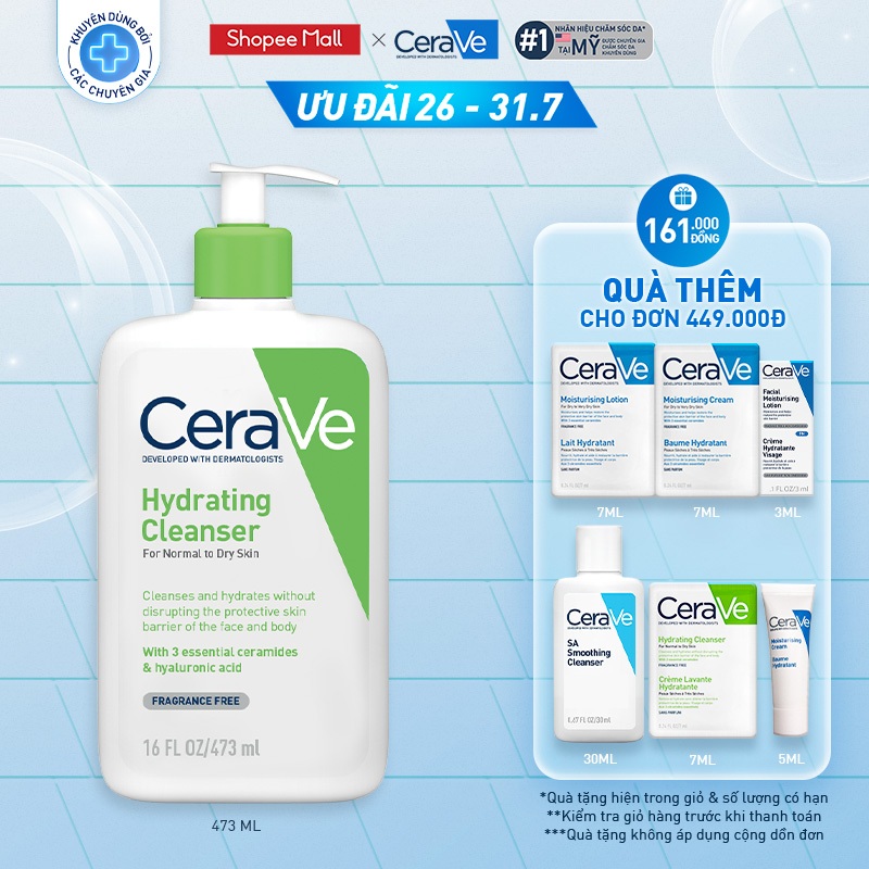 Sữa rửa mặt giúp làm sạch sâu dành cho da thường và da khô Cerave Hydrating Cleanser 473ML 408,000