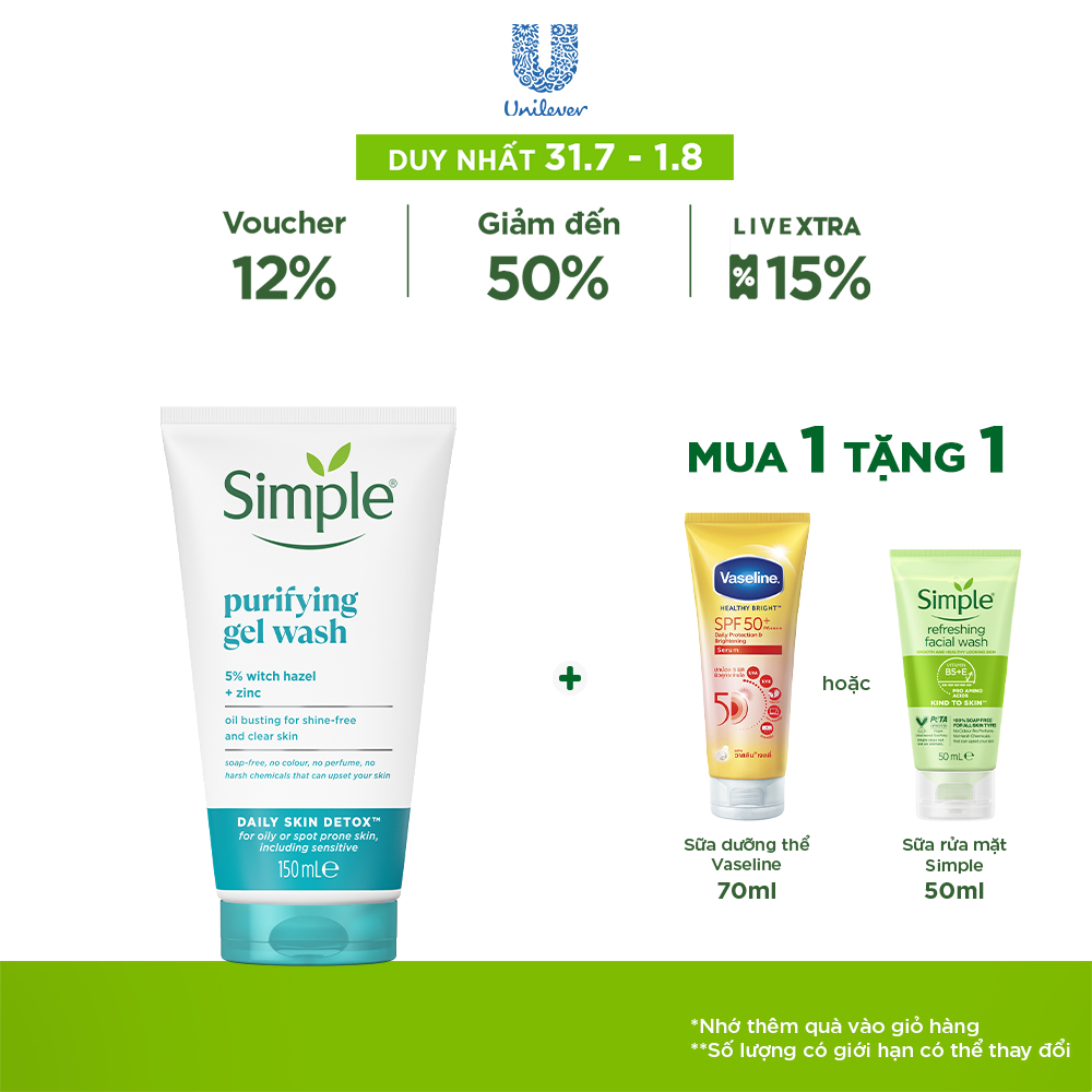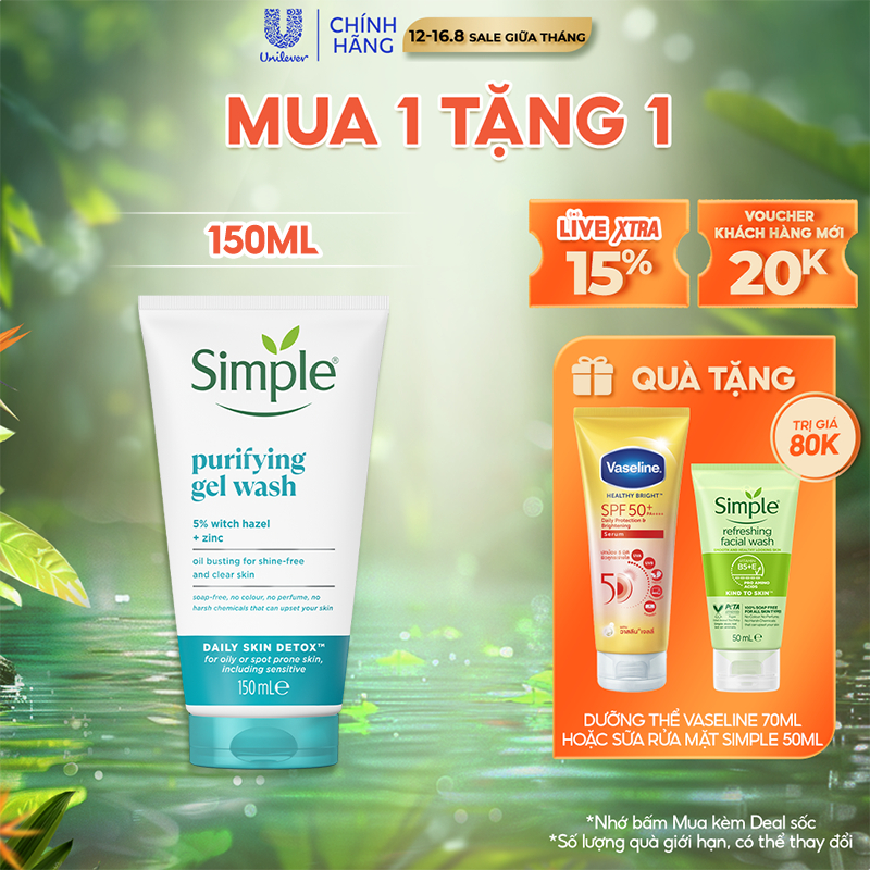 Sữa rửa mặt Simple giúp kiềm dầu và ngừa mụn hiệu quả - cho da dầu mụn 150ml [CHÍNH HÃNG ĐỘC QUYỀN] [DIỆN MẠO MỚI] 105,000