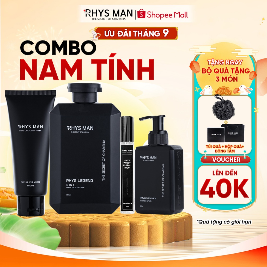 Combo Sữa tắm gội nam 3in1 350ml & Sữa rửa mặt nam 100ml & Dung dịch vệ sinh 120ml & Nước hoa nam 10ml RHYS MAN 419,000