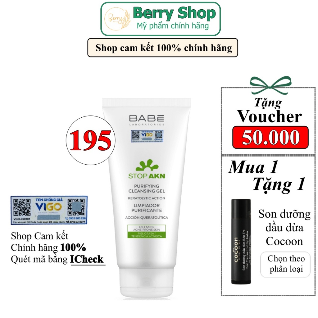 [Chính hãng - Mua 1 Tặng 1] Combo Babe: Sữa rửa mặt & Kem dưỡng & Kem chống nắng & Chấm mụn kiềm dầu, giảm mụn 195,000