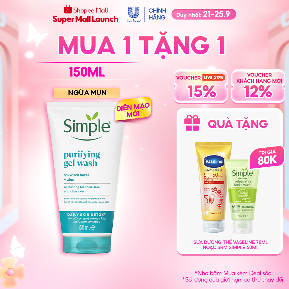 Sữa rửa mặt Simple giúp kiềm dầu và ngừa mụn hiệu quả - cho da dầu mụn 150ml [CHÍNH HÃNG ĐỘC QUYỀN] 132,000